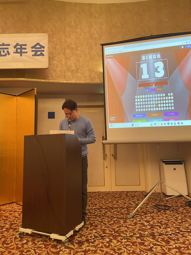 今年の忘年会では趣向を凝らしたゲーム企画をご用意しました。個人戦はビンゴゲーム、団体戦は6人1組で行う間違い探しゲームで、各グループがどれだけ早く間違いを見つけられるかを競い合いました。