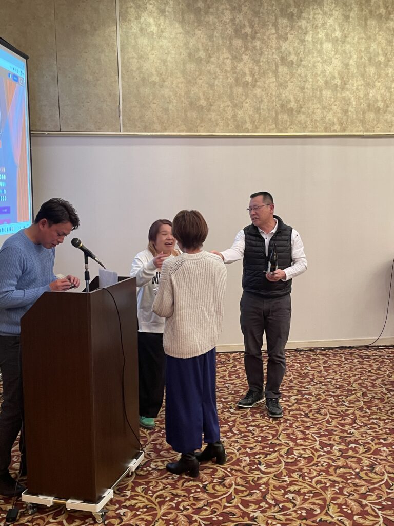 すべてのゲームは空くじなし、ハズレなしで、参加者全員に賞品が当たる仕組みとなっており、ペア宿泊券や松阪牛5,000円相当など豪華な賞品を見せ合いながら、会場は大いに盛り上がりました。